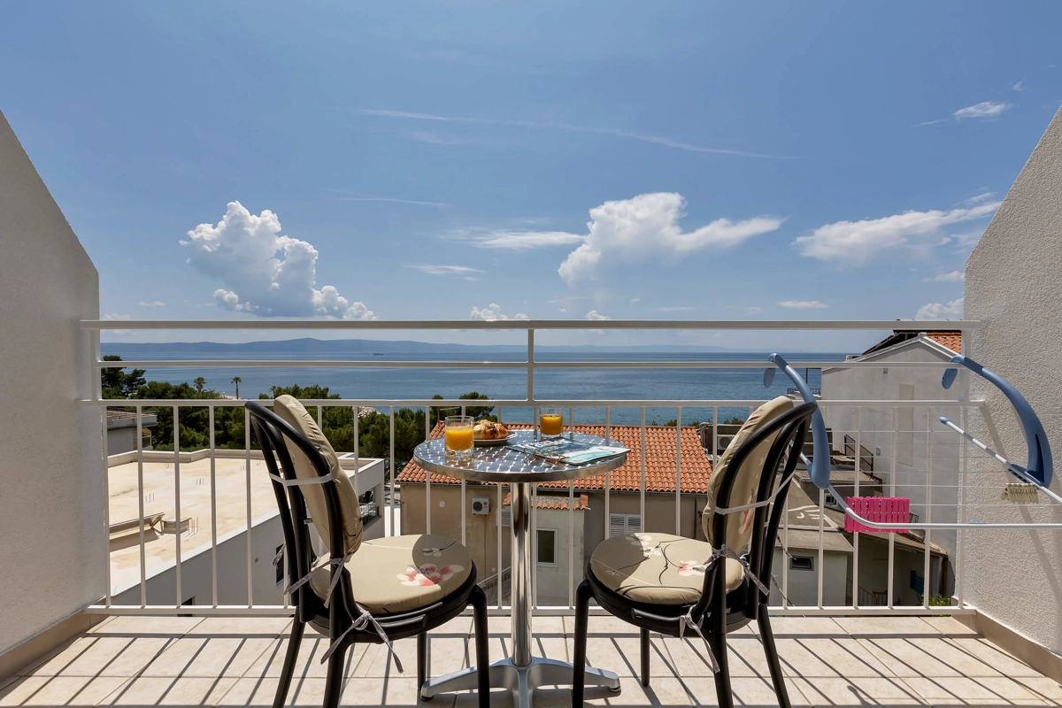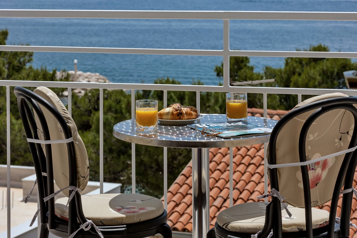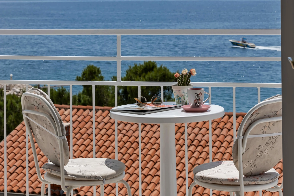 Beachfront rooms Ana A1 has capacity for 2 persons. It has a queen-sized bed, a bathroom and an amazing view of the sea from the balcony.