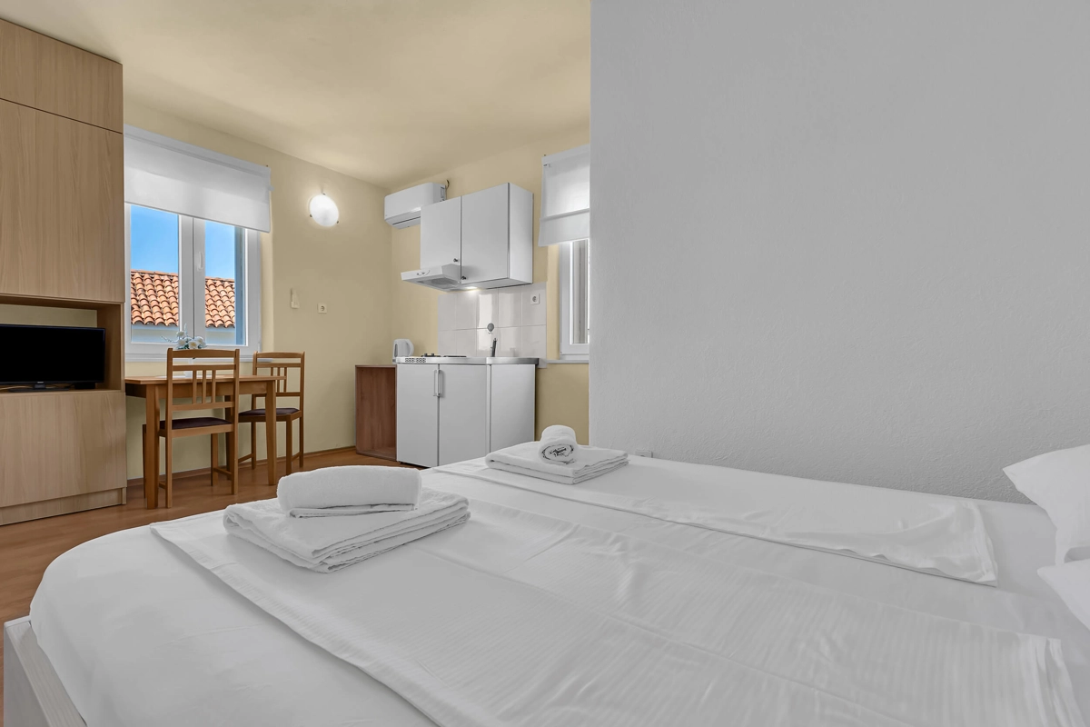 Studios Jakov offers accommodation in 4 studio apartments at Your choice. Those on the ground floor all have appointed seating area on the outside terrace, and those on upper floors have balconies. All studios are air-conditioned, have wi-fi, and parking.