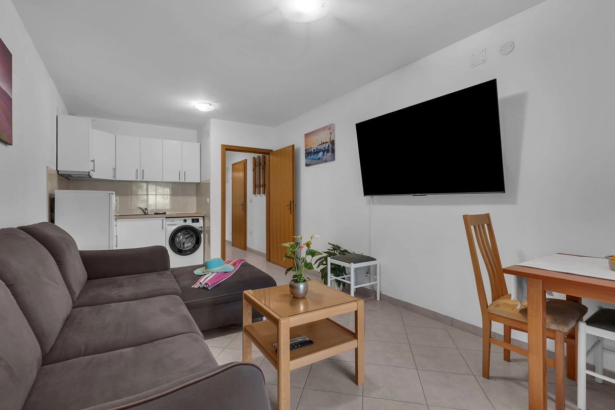 Apartment A4 is an apartment for maximum of 4 persons, situated on the ground floor. It has one queen-sized bed and a couch. It has a washing machine, a flat-screen TV and a terrace. Apartment is air-conditioned, has a free parking and wi-fi. Bed linen and towels are provided in the apartment.