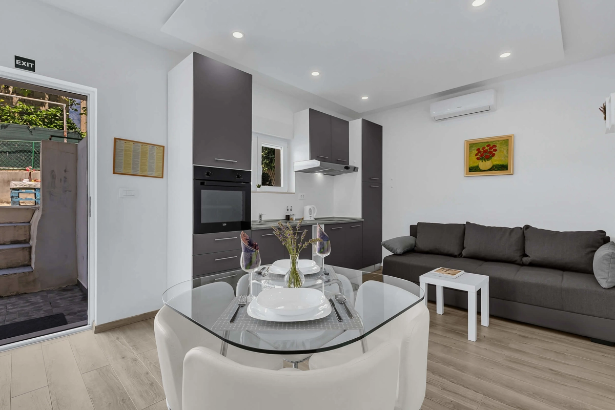 Apartment A1 is situated on the ground floor and has 1 bedroom with a queen-sized bed, 1 bathroom and a terrace. It has air-conditioning, wi-fi, fully equipped kitchen and parking.