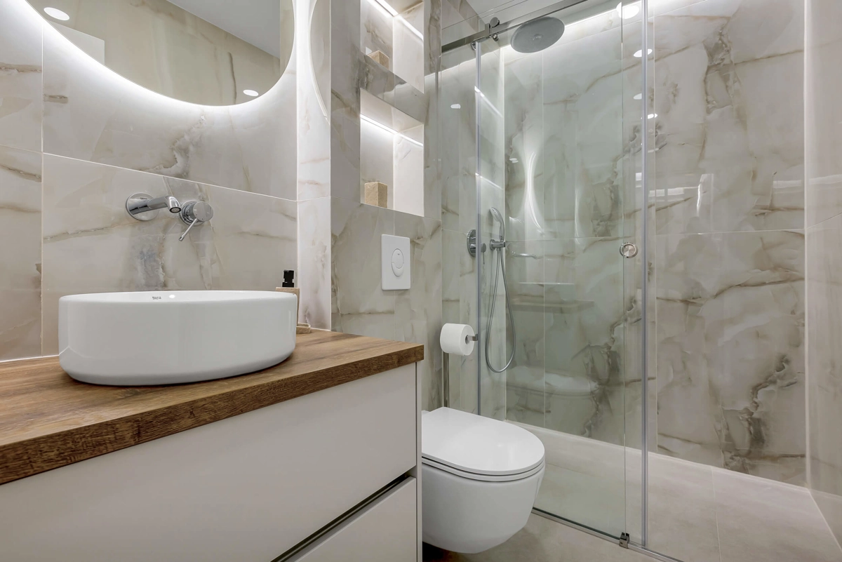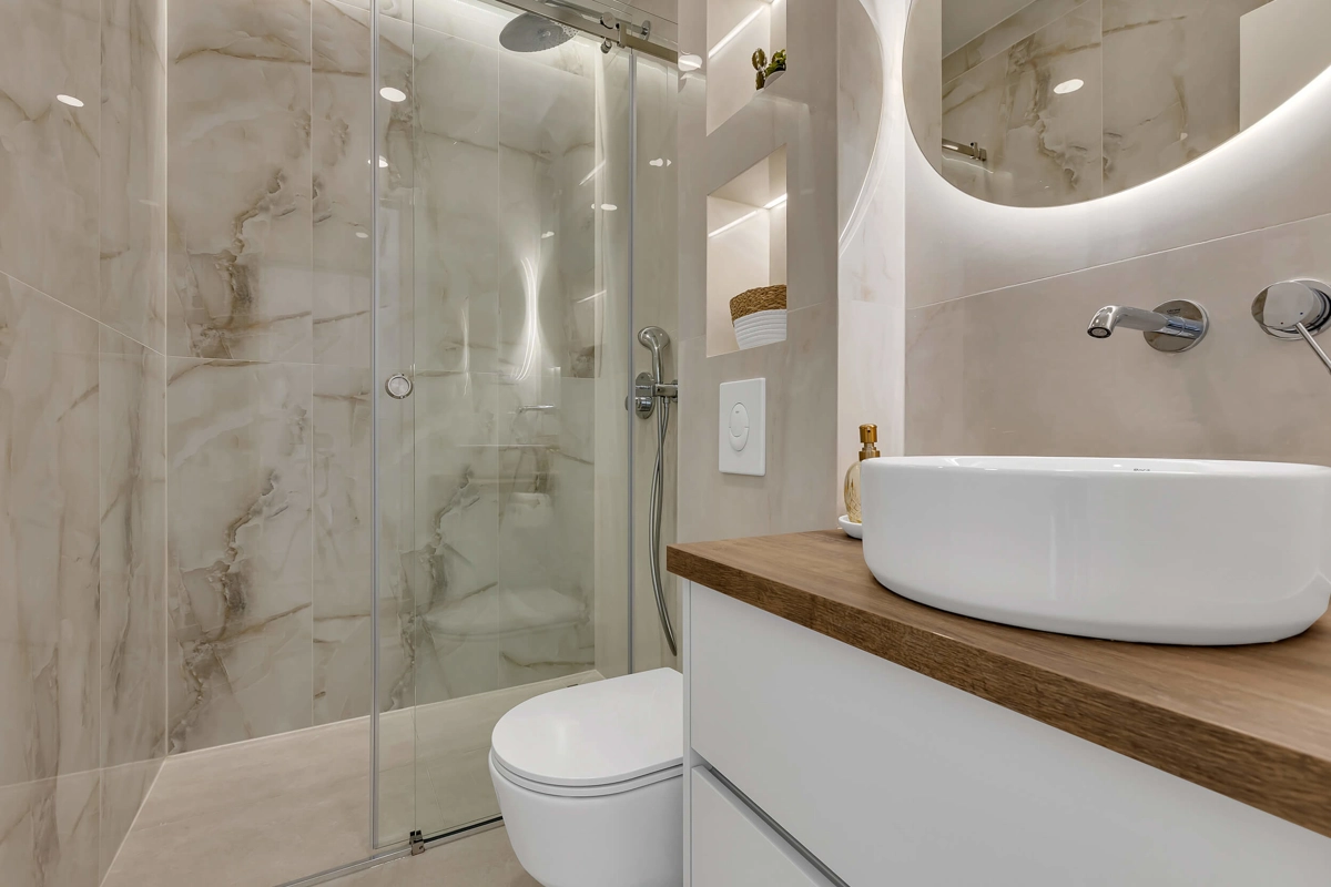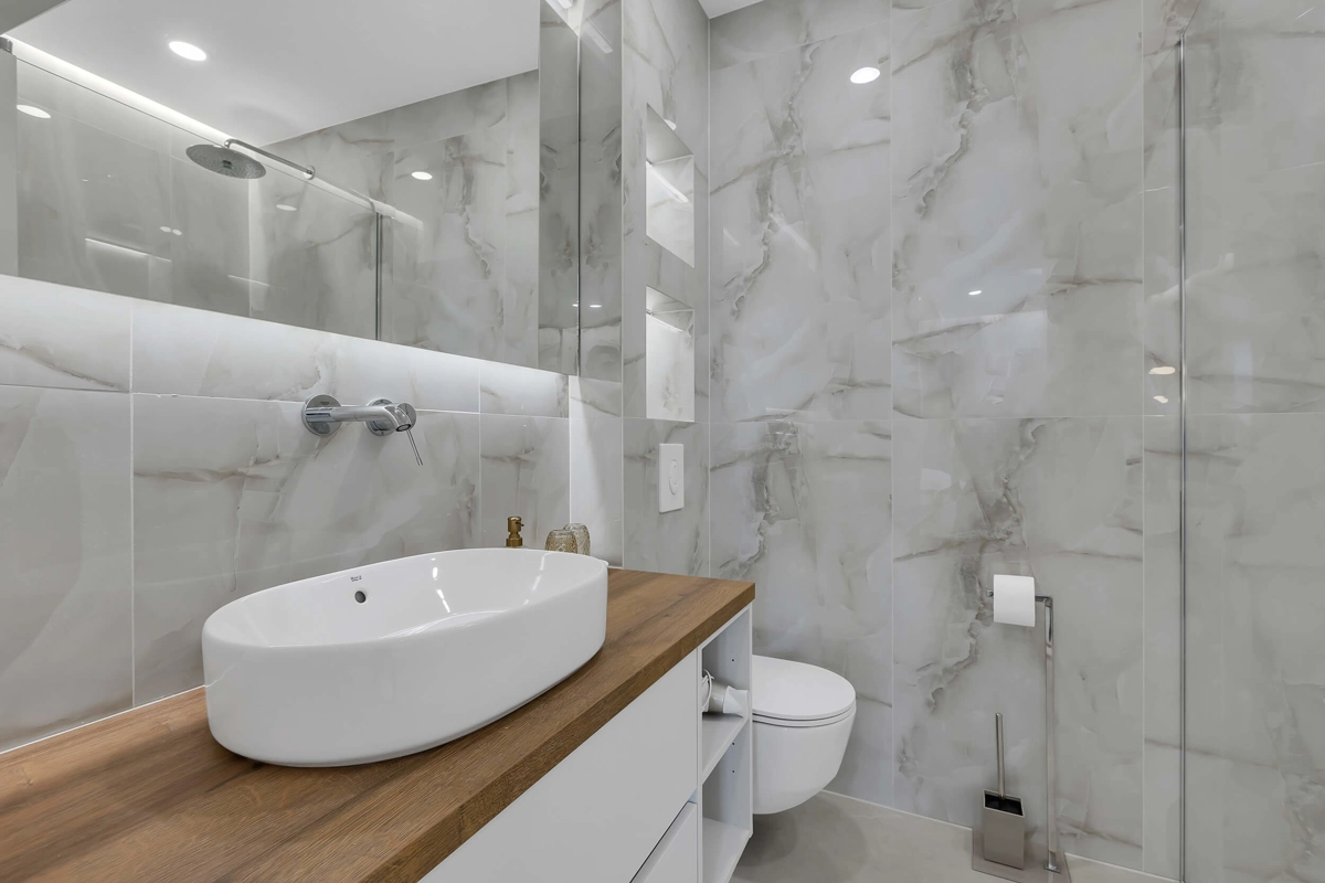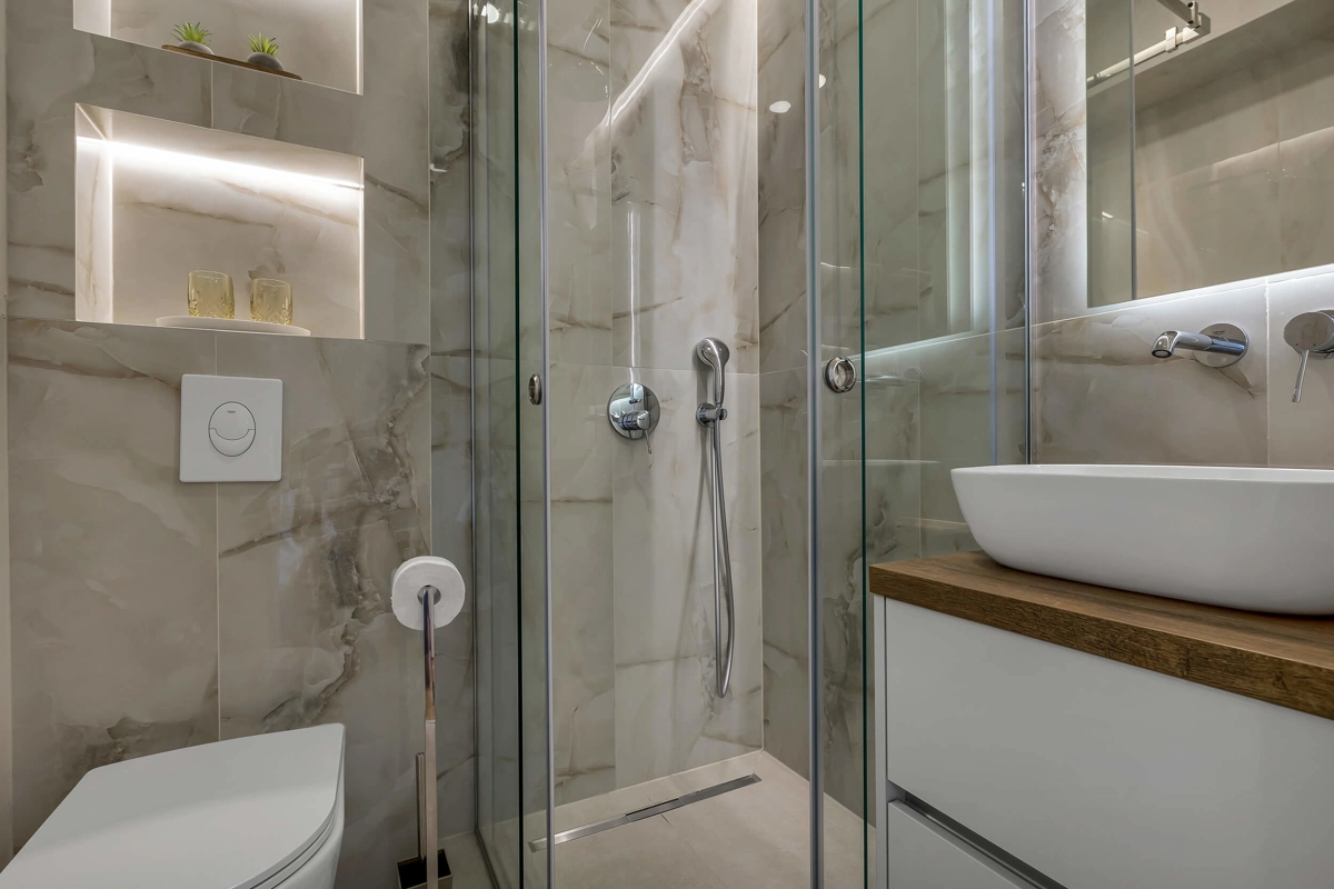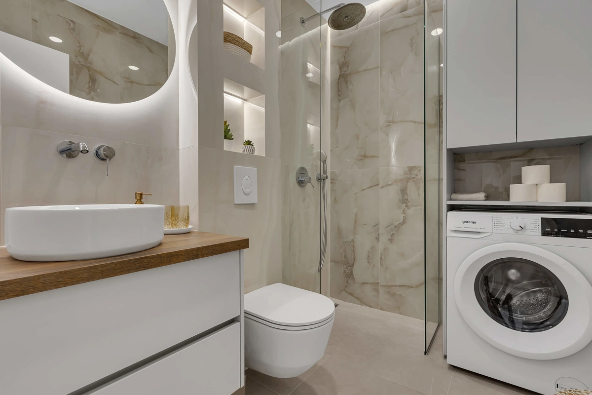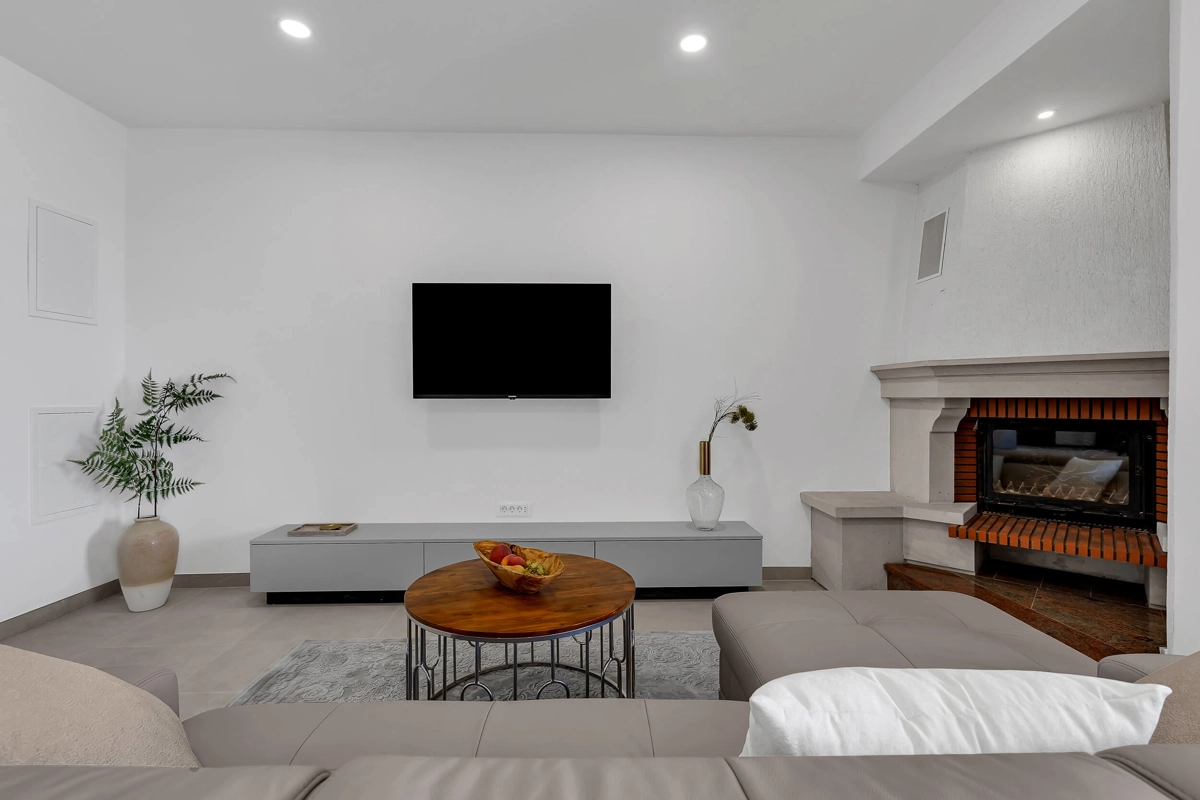 Apartment A1 has capacity for 6 persons, and is situated on the 1st floor. The apartment is air-conditioned, has 3 bedrooms, 3 bathrooms, living room with a flat-screen TV, a dining area with a dining table, fully equipped kitchen, and a terrace with a seating area for cozy relaxing evenings. Each bedroom has a queen-sized bed and its own bathroom. Apartment is air-conditioned, has a free parking and wi-fi. Bed linen and towels are provided in the apartment.