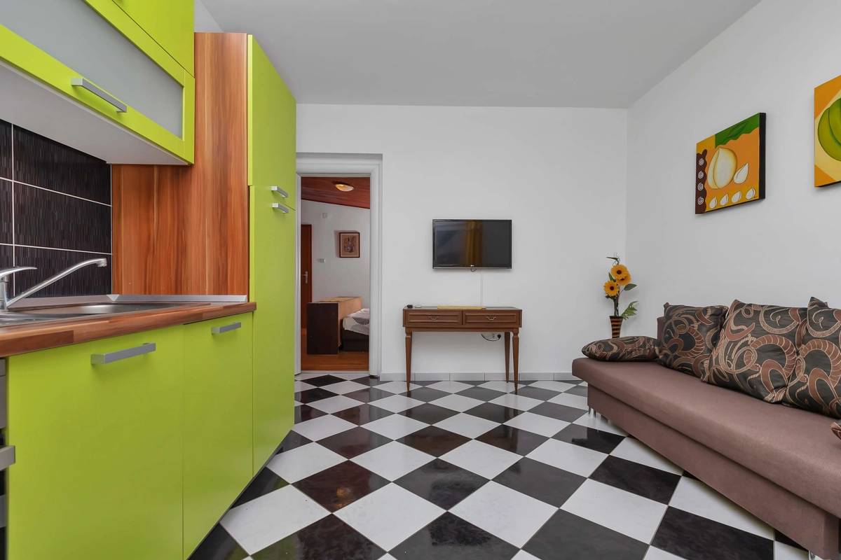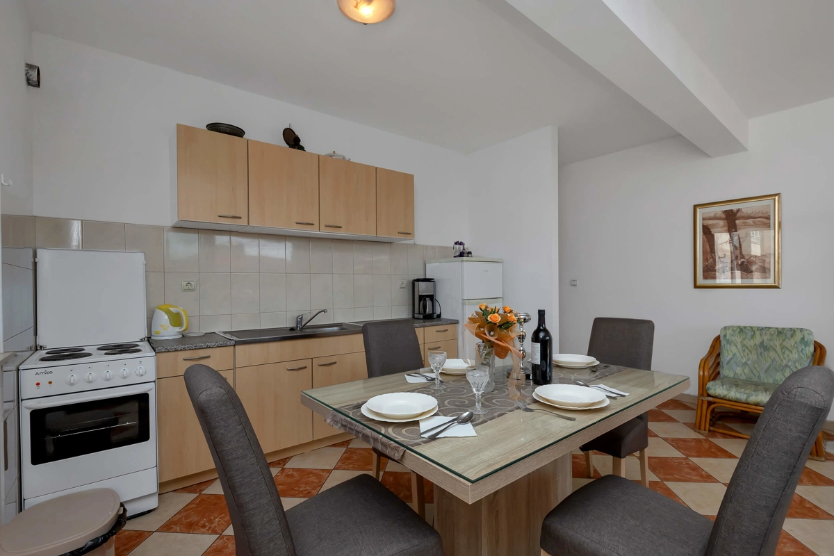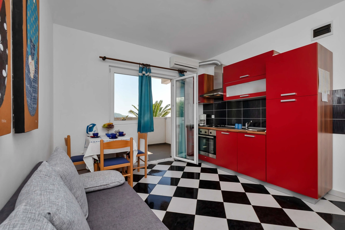 Apartments VELE offer accommodation in seven apartments at Your choice. Each of the apartments has a balcony or a terrace with a sitting area, fully equipped kitchen, air-conditioning and wifi. All of them have an amazing sea view. Each apartment has a private parking spot. Bed linen and towels are provided in apartments.