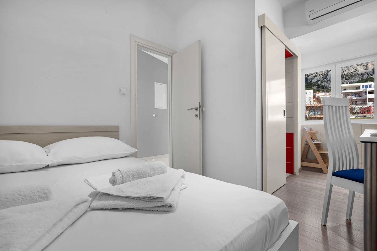 The apartment has three bedrooms, and two bathrooms, fully equipped kitchen with a fridge and a freezer, and a chair for toddlers. This modern apartment encourages lazy mornings on the balcony with a steaming mug of coffee or tea, and relaxing evenings watching sunsets over calm water and islands. Still, we encourage you to leave the apartment and go explore all that Makarska has to offer.