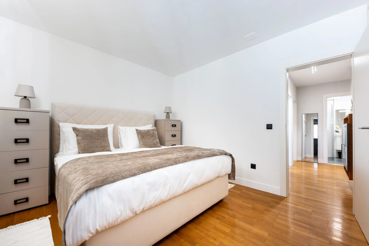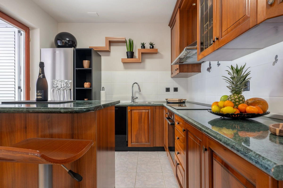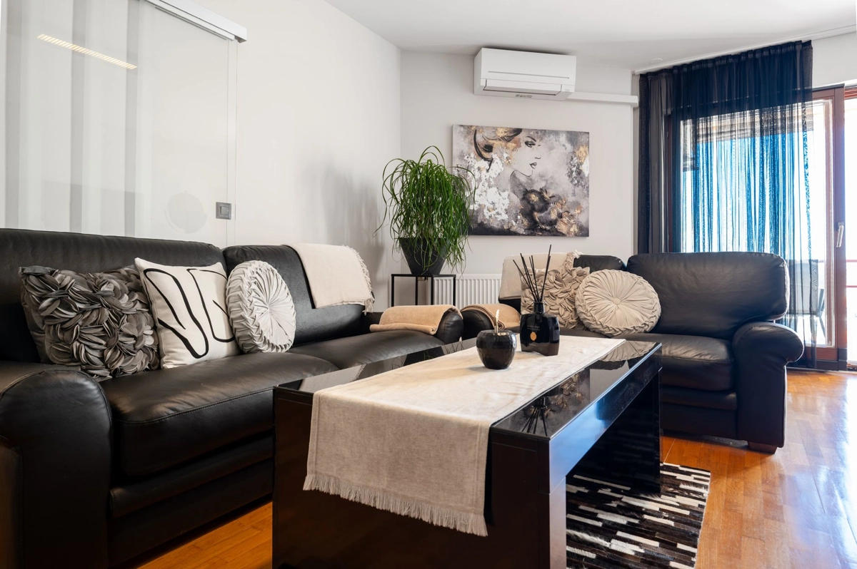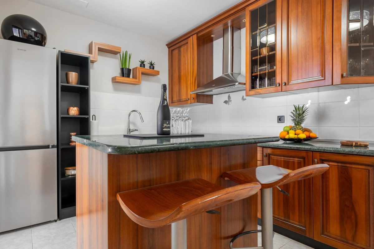 It has 3 bedrooms, 2 with a queen-sized bed and one with a single bed, 1 bathroom and 1 WC, a kitchen, a flat-screen TV, air-conditioning and wi-fi. It has a spacious living room and a balcony with am amazing sea view.