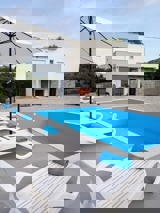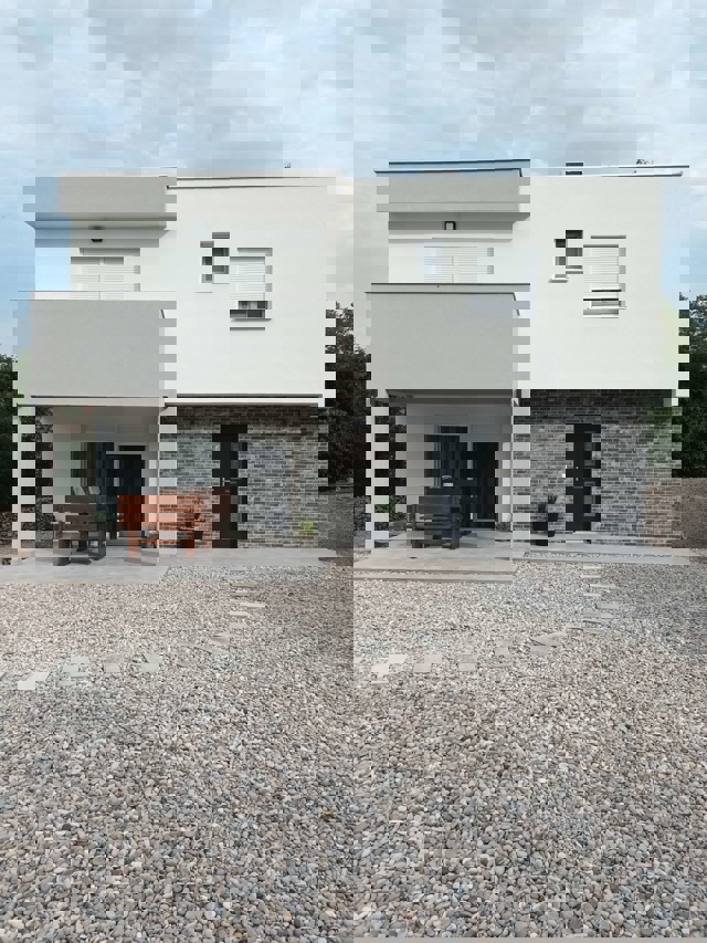 Gostima je na raspolaganju prostrano dvorište s vanjskim sezonskim bazenom, ležaljkama, suncobranima i opremom za roštilj, savršeno za cjelodnevni boravak na otvorenom. U sklopu objekta osigurano je i privatno parkiralište, a cijela vila rezervira se kao jedna jedinica, što jamči potpunu privatnost tijekom boravka.