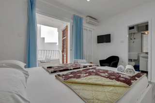 Apartment A1 is a studio apartment for 2 persons, it has a queen-sized bed, an outdoor kitchen and a modern bathroom.