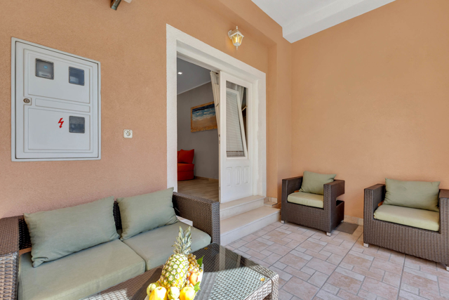 Apartment A2 can accommodate up to 5 persons. It had 2 bedrooms with queen-sized beds with en-suite bathrooms, fully equipped kitchen and a terrace with a sea view.