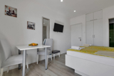 Apartment A7 is a studio apartment for maximum 2 persons. It has a mini-kitchen, a queen-sized bed and a bathroom. It is situated on the 2nd floor and has a balcony.