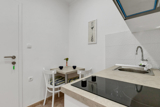 Apartment A8 is a studio apartment for maximum 2 persons. It has a queen-sized bed and a bathroom. The mini-kitchen is separated from the apartment on the same floor. The apartment is situated on the 2nd floor with a balcony.