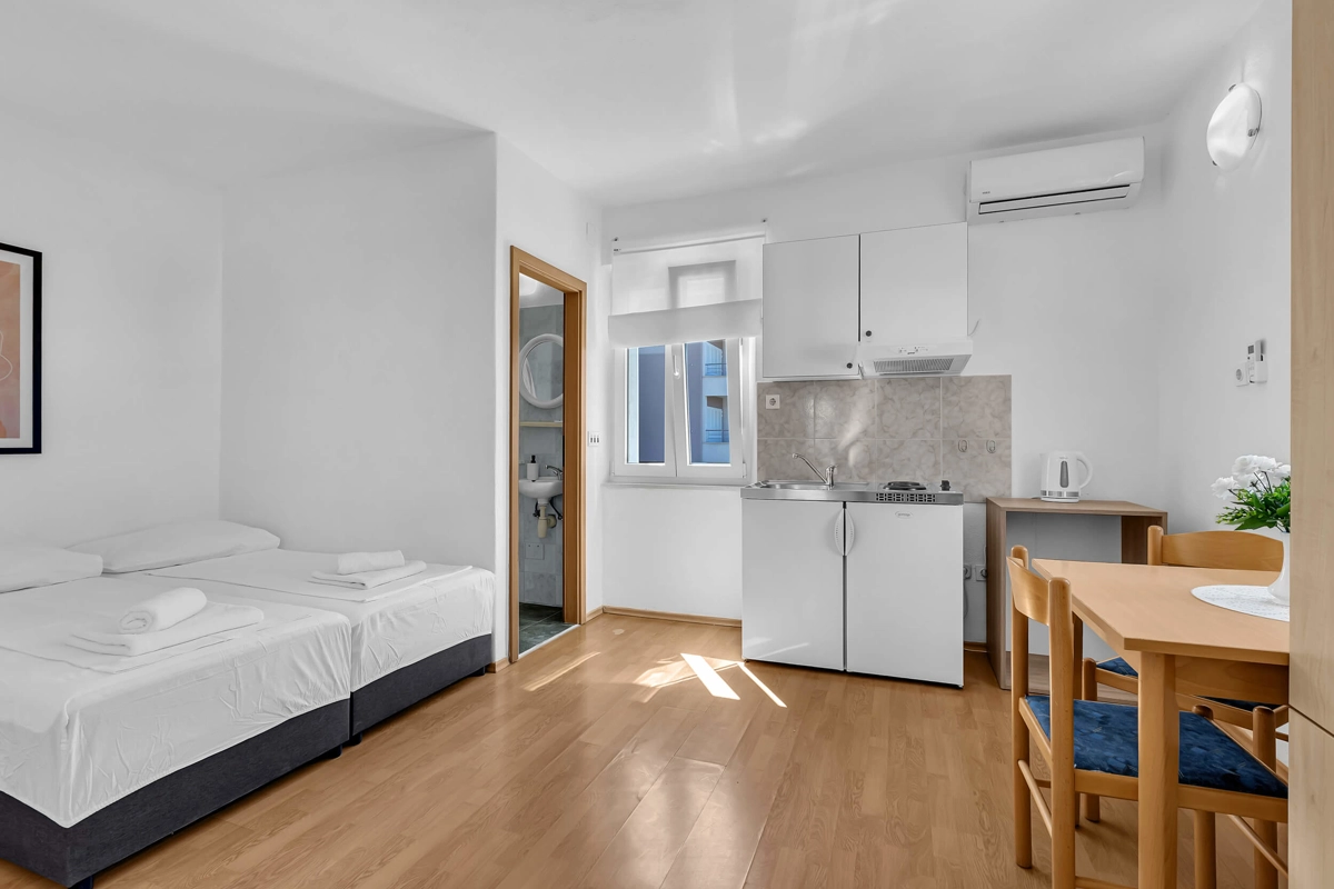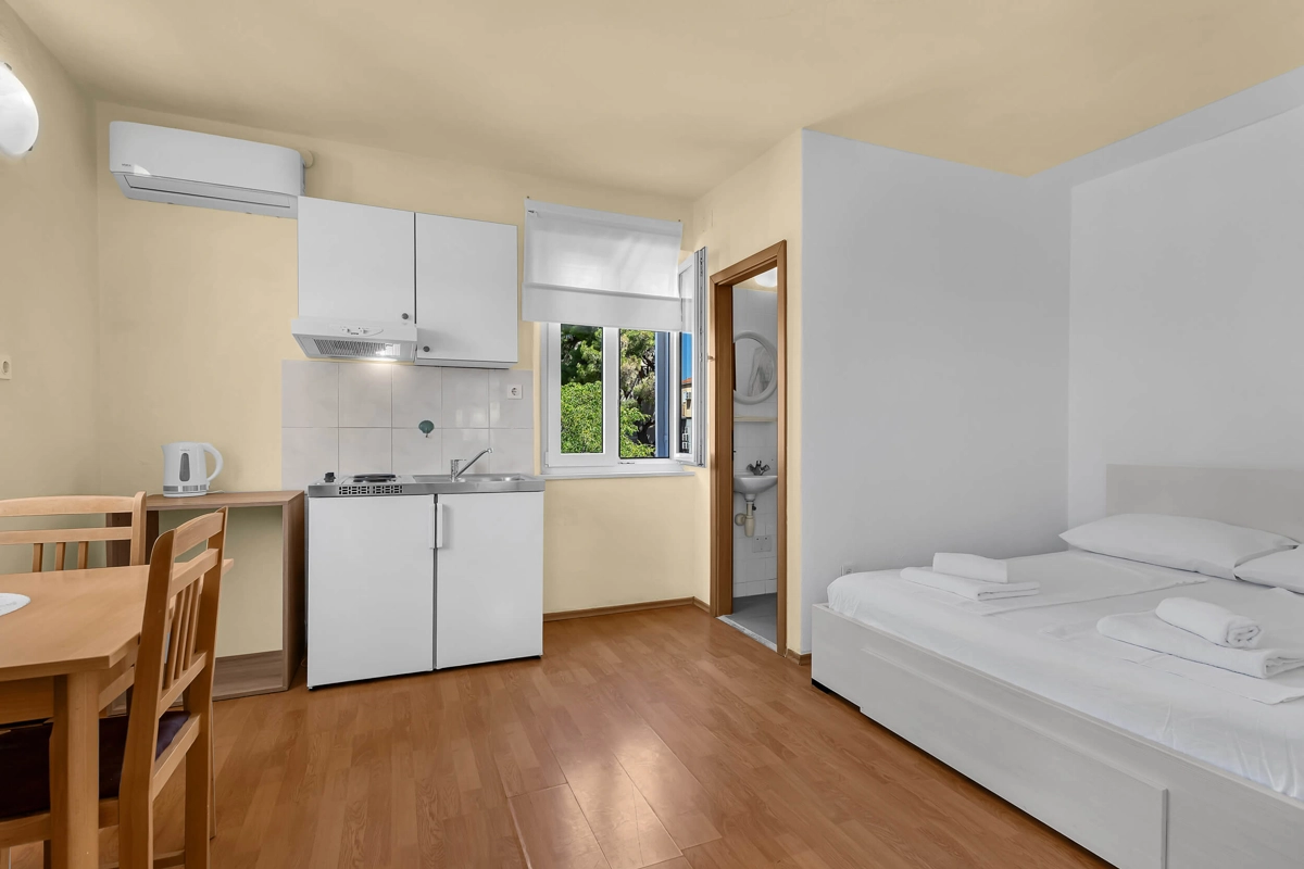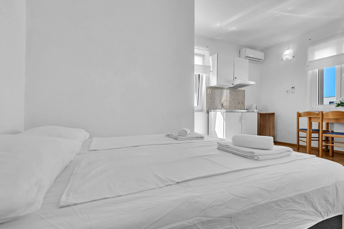 Studios Jakov offers accommodation in 4 studio apartments at Your choice. Those on the ground floor all have appointed seating area on the outside terrace, and those on upper floors have balconies. All studios are air-conditioned, have wi-fi, and parking.