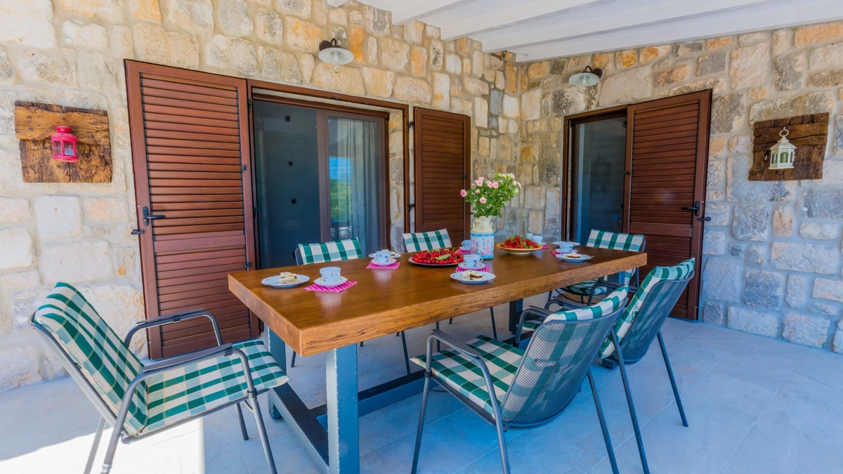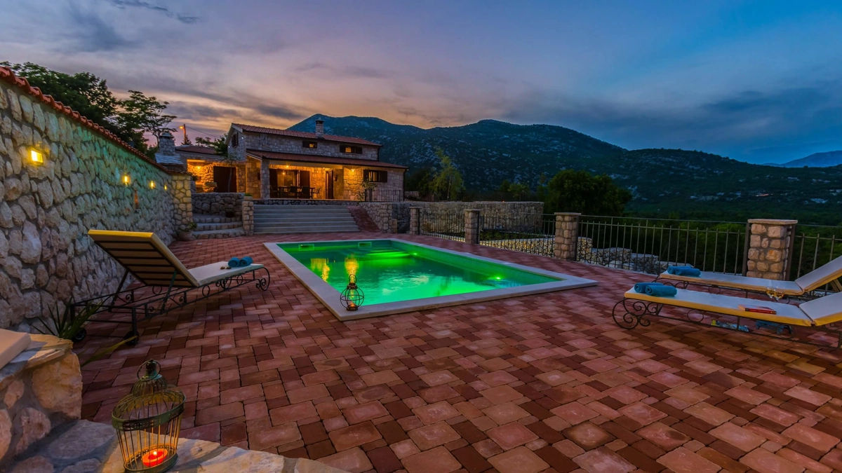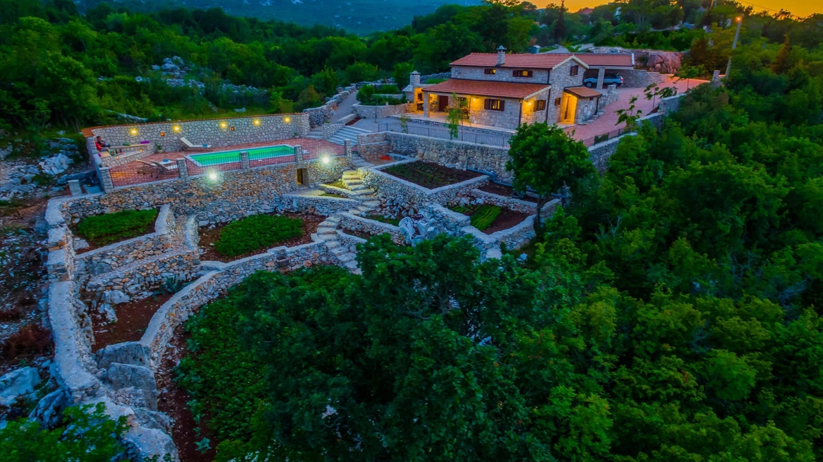Villa the Melody of Nature near Makarska is a rustic villa cozily nested in the wild nature of Dalmatian stone. Very privately situated between Makarska and Vrgorac, here You are perfectly placed to explore both attractive beaches of Makarska riviera and continental sites of cultural and historic meaning. This stone villa can accommodate maximum of 6 guests, in 3 bedrooms with 2 bathrooms. The property is fully surrounded with a stone wall giving it the feel of a well protected hacienda. Carefully tended garden with local seasonally grown vegetables is perfect for a morning walk and some gardening, especially if you pride yourself with a ‘green thumb’. Cool off at a private pool with a good book or a glass of sweet local wine. If an inspiration strikes, show your culinary mastery in fully equipped kitchen or at the outside barbeque. Afford yourself a carefree vacation in a villa that ensures privacy and quiet relaxation.