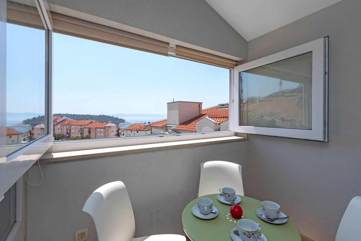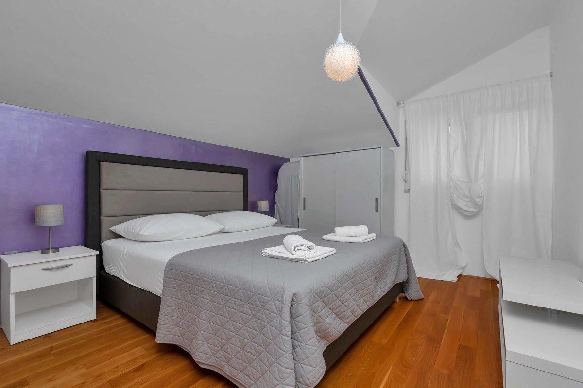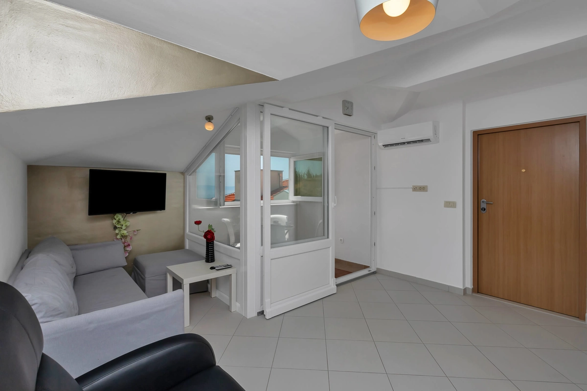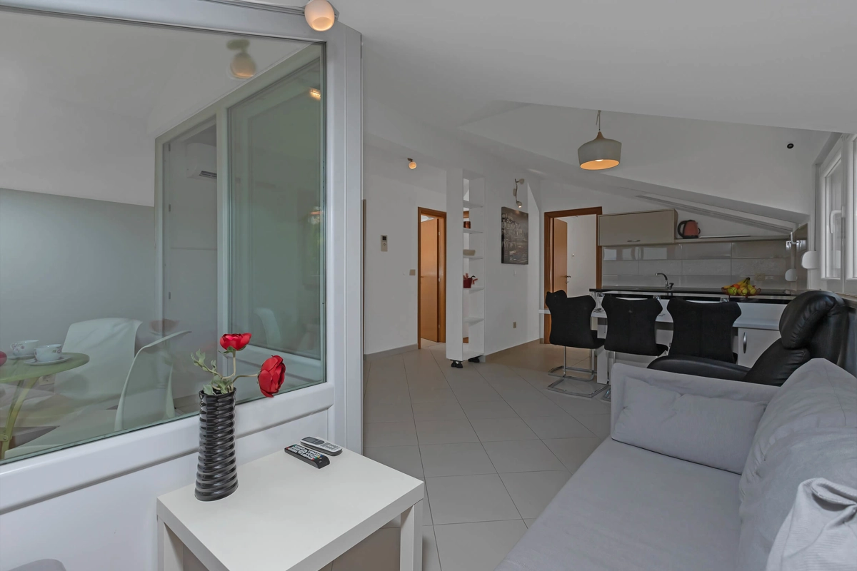Top View Apartment is located on the 5th floor in a building with an elevator, offering a great view. It can accommodate maximum of 4 persons. It has 2 bedrooms with a queen-sized beds, 1 bathroom, a kitchen, a flat-screen TV, air-conditioning and wi-fi. It also has 1 parking spot next to the building.