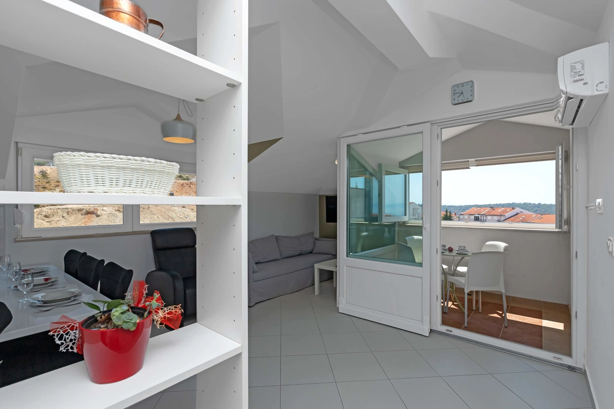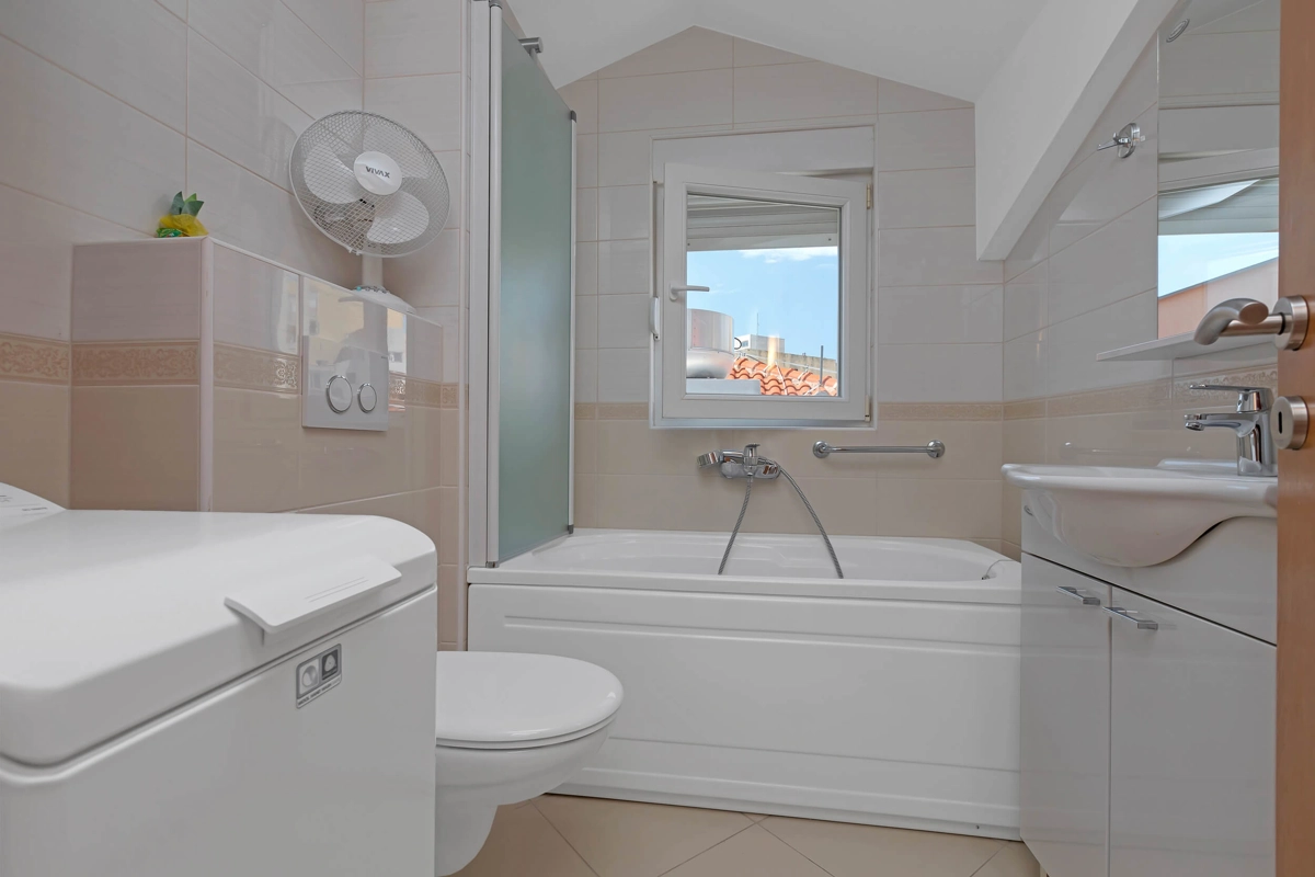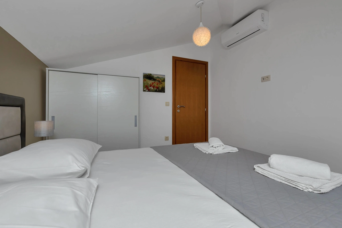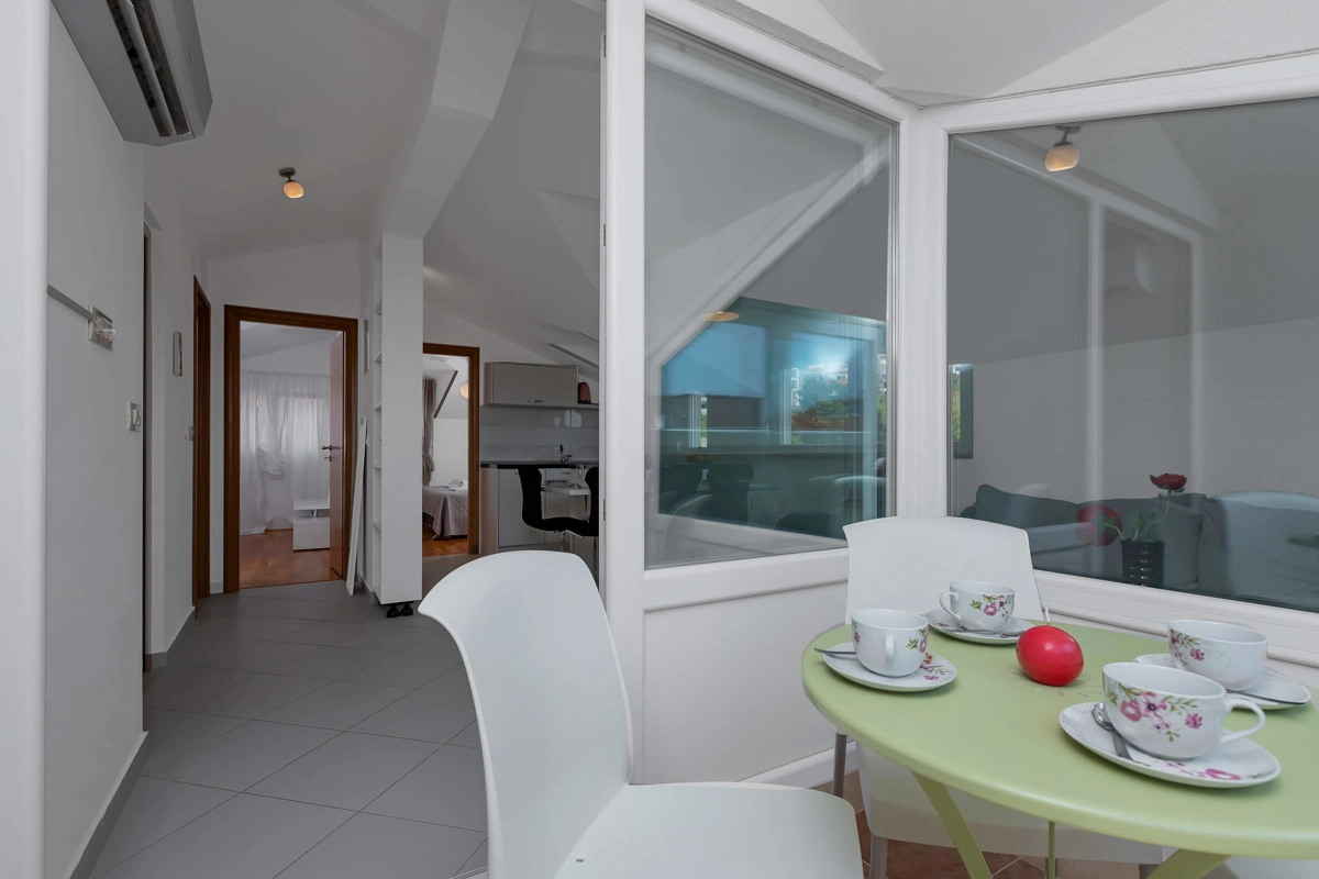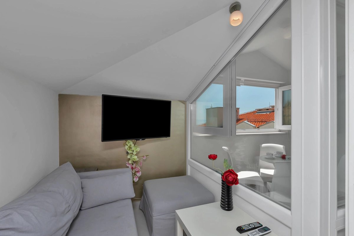 Top View Apartment is located on the 5th floor in a building with an elevator, offering a great view. It can accommodate maximum of 4 persons. It has 2 bedrooms with a queen-sized beds, 1 bathroom, a kitchen, a flat-screen TV, air-conditioning and wi-fi. It also has 1 parking spot next to the building.